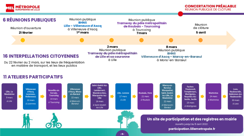 Au terme de cette concertation préalable qui s'est tenue du 21 février au 5 avril 2022, la Métropole européenne de Lille à recueilli et analyser l'ensemble des contributions. Elle en a produit un bilan qui permet de synthétiser l'ensemble des expressions et d'identifier les suites données par la Métropole.