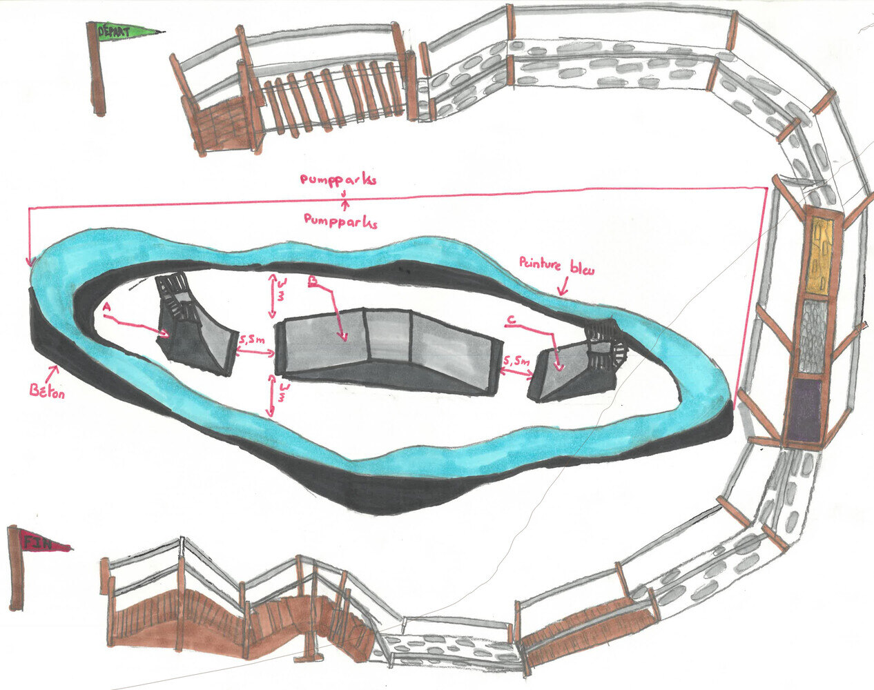 Pumpark : parcours en boucle aves des bosses qui permet de contrôler son équilibre et convient aux draisiennes, vélos, skates, trottinettes, rollers et accessible en fauteuil.