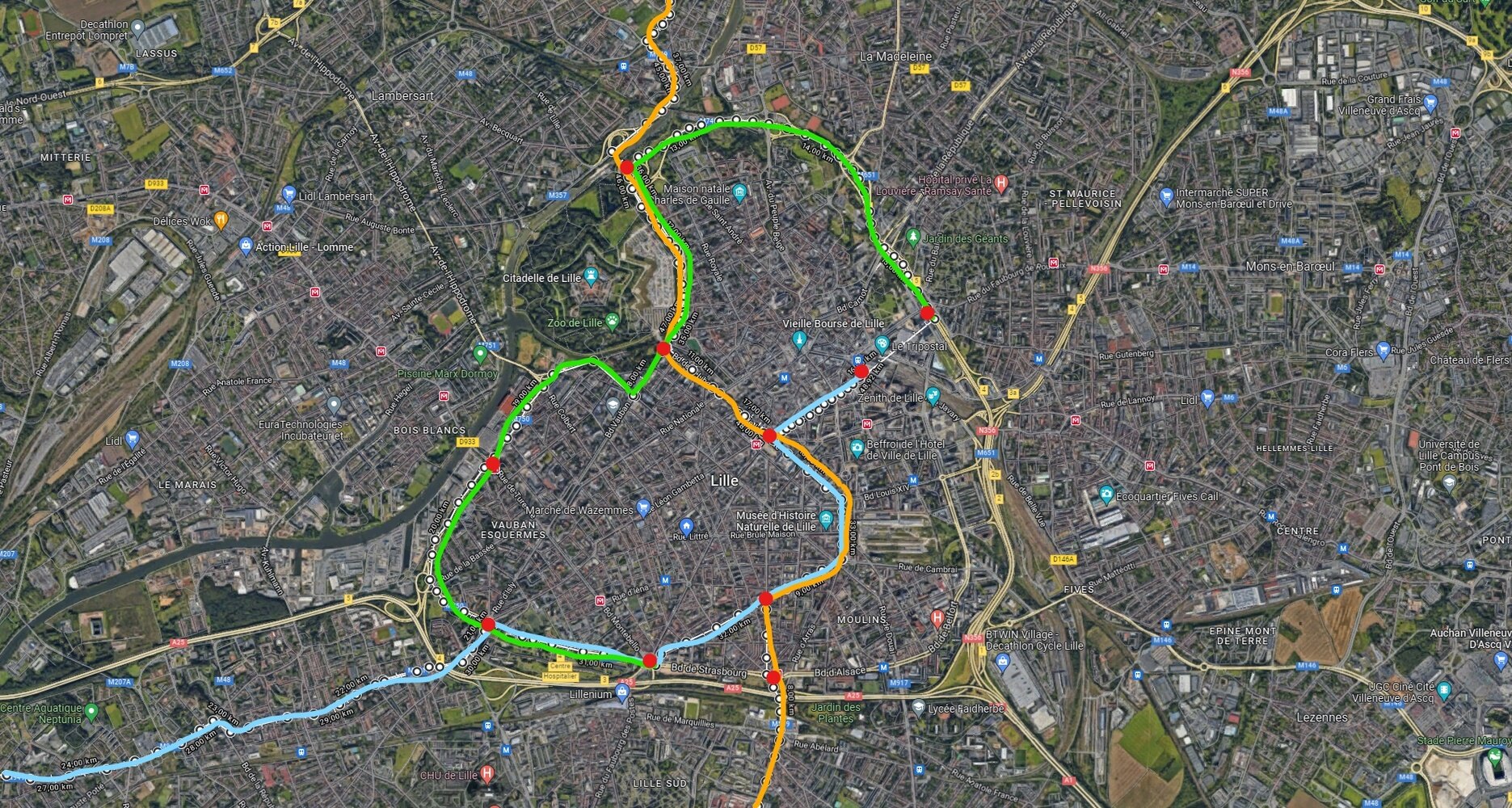 Bonjour, nous vous remercions pour votre contribution détaillée. Suite à la concertation préalable qui s'est tenue du 21 février au 5 avril 2022, les garants missionnés par la Commission Nationale du débat Public ont émis dans leur bilan la demande de précision suivante sur le projet de tramway du pôle métropolitain de Lille et sa couronne : "Il est demané à la MEL de conduire a minima une étude de faisabilité ou d'opportunité des alternatives présentées et argumentées pour desservir le centre de Lille et de préciser comment elle envisage d'assurer la couverture des zones blanches côté Est". La proposition que vous soumettez présente des similitudes avec le Scénario F analysé dans cette étude, que vous pouvez consulter sur : /processes/concertationprealablesdit dans les documents à consulter "Etudes complémentaires". L'infrastructure proposée s’inscrit, au moins en partie, dans la famille des tracés alternatifs proposés pendant la concertation. Ces tracés proposés viennent en complémentarité des tracés des projets de tramway et de Bus à Haut Niveau de Service (BHNS) concertés, permettant d’élargir les zones couvertes par une desserte à moins de 500m en mode de transport lourd. Ils offrent ainsi des perspectives sur le long terme d’évolution du réseau de la métropole. Le Conseil métropolitain réuni à ce sujet en juin et décembre 2022 a précisé pour ce projet de tramway du pôle métropolitain Lille et sa couronne les choix de tracé. Le projet est désormais poursuivi sur la base des orientations retenues par le Conseil métropolitain, à savoir : « Le Maître d'Ouvrage prend en compte dans la poursuite des études sur le projet de tramway du pôle métropolitain de Lille et sa couronne les orientations suivantes : […] Sur le secteur de Lille Centre : Retenir le tracé sur la façade Ouest de la ville de Lille par les boulevards Vauban, de Lorraine et de la Moselle. ». Votre contribution, qui présente donc d’autres choix de tracé, sera toutefois consignée.