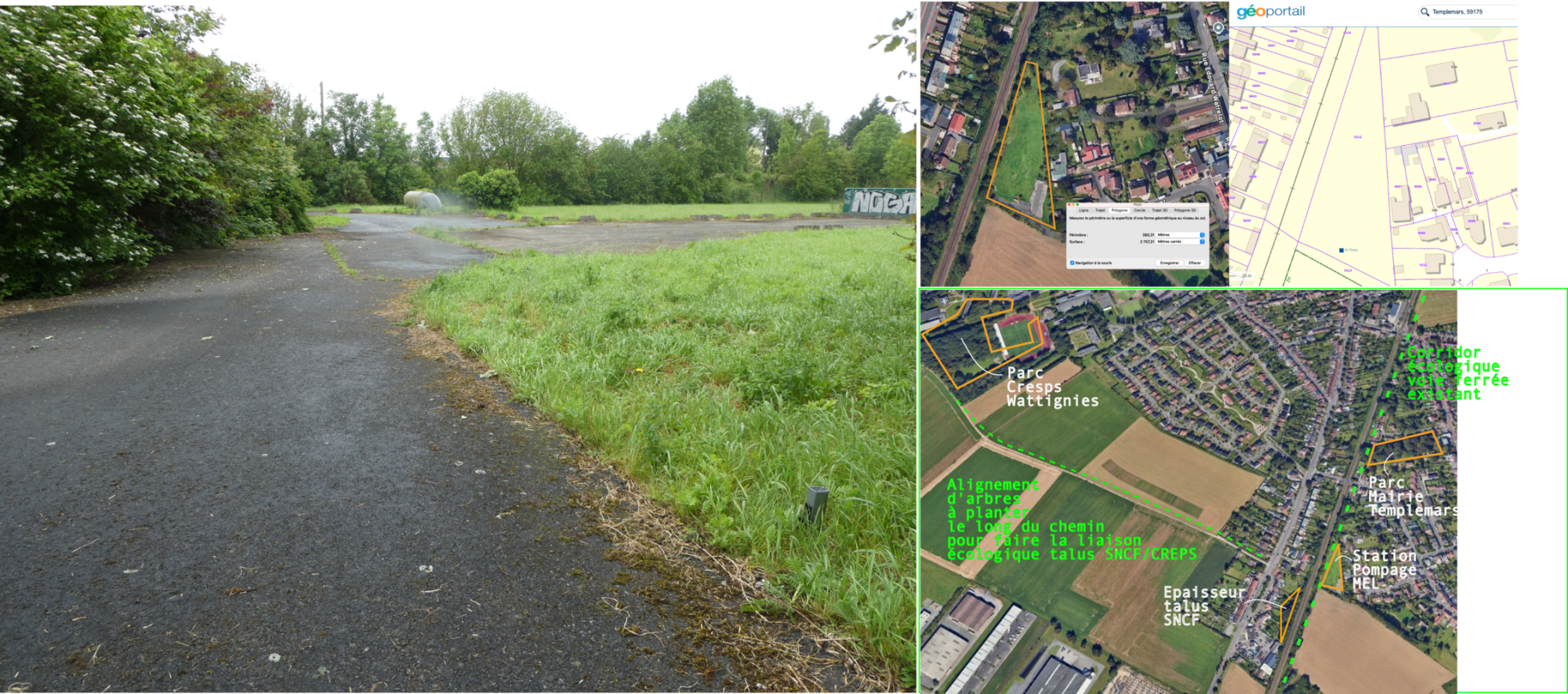Cet espace est sous aménagé en matière d'accueil de la biodiversité alors qu'il est à un endroit stratégique, le long du talus arboré de la voie ferrée qui s'épaissit régulièrement sur la commune de Templemars en raison de fonds de jardins arborés (dont le Parc de la Mairie). Sur la commune, cette portion du corridor accueille de l'écureuil roux (espèce en voie de disparition) à qui il faut garantir des lieux de sauvegarde sur la MEL et une certaine tranquillité qu'un tel espace, non ouvert au public, peut lui offrir. Par ailleurs, le terrain est idéalement situé, en fond de vallée, pour accueillir également des eaux de ruissellement et une zone d'infiltration naturelle pourrait y être aménagée (à dominante humide). Enfin, la proximité d'avec l'espace boisé du CREPS de Wattignies incite à envisager de planter des arbres de haut jet le long du chemin du Bois Leprêtre ( lieu dit du rouge bouton) qui fait la liaison entre la M 549 et le CREPS.