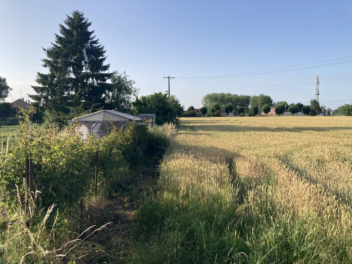 Terrain cultivé (mais ou blé...), derrière les jardins familiaux de la commune et à côté d'une future aire de loisirs