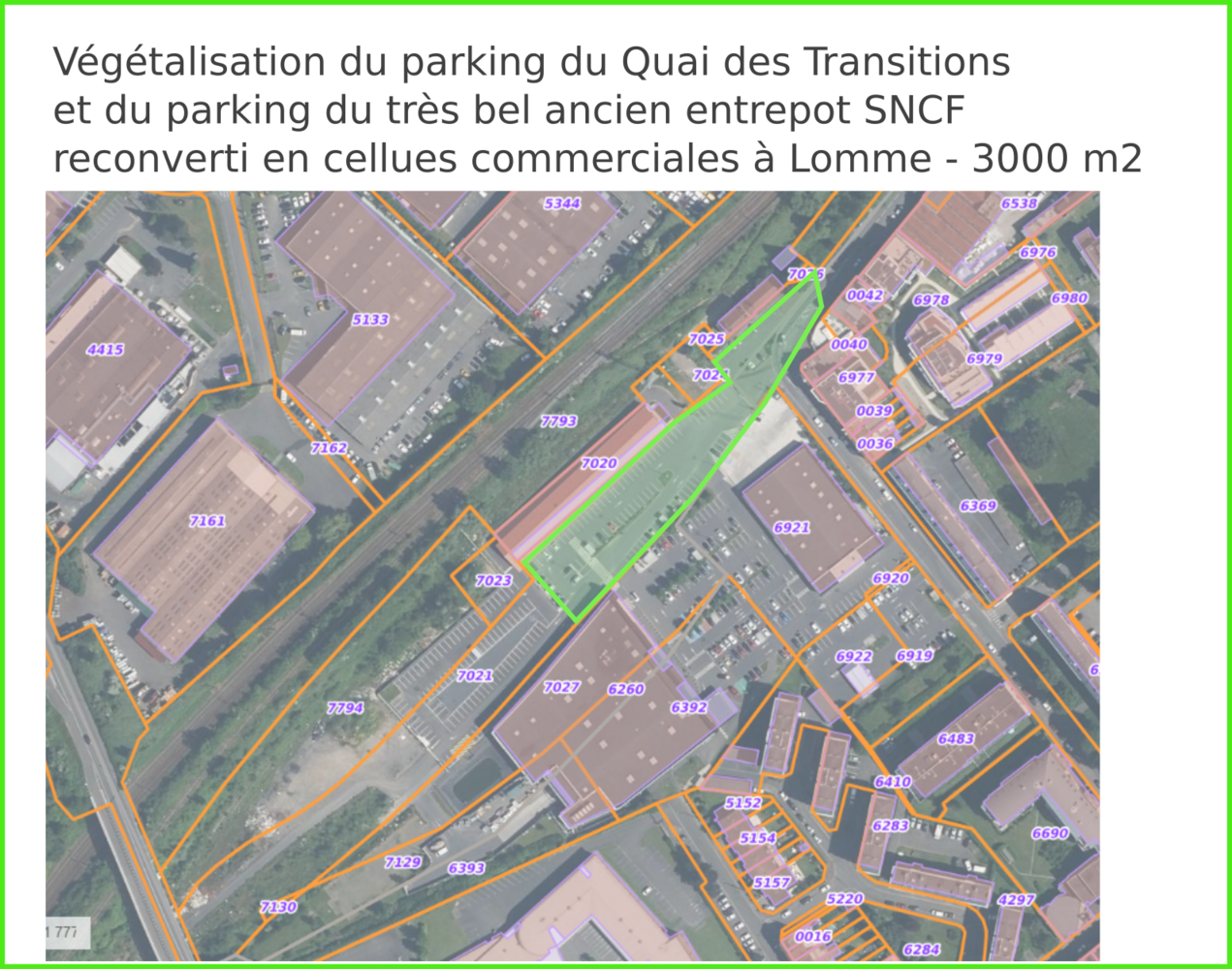 #120. Végétalisation du parking du Quai des transitions et de celui de l'ancien et très bel entrepôt SNCF, attenant, à Lomme