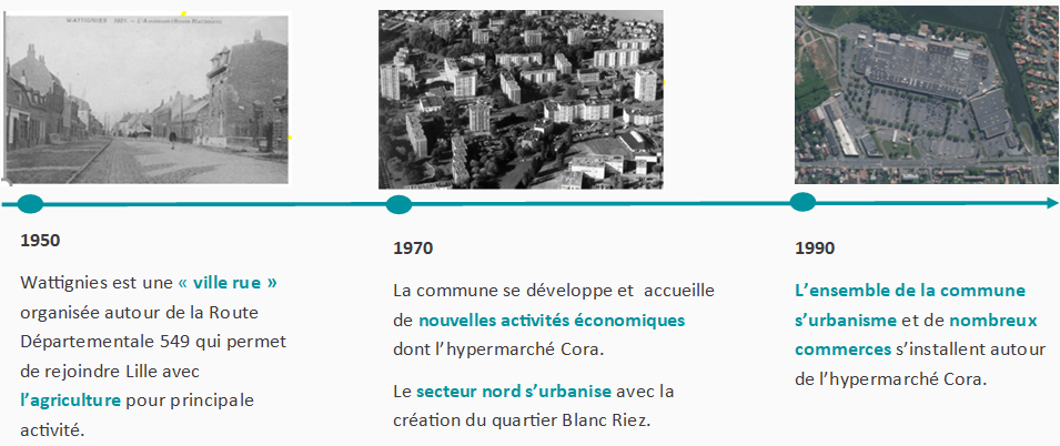 Le secteur, Cora Wattignies, depuis l’implantation de l’hypermarché dans les années 70, a connu de nombreuses évolutions qui nécessitent aujourd’hui d’imaginer un nouveau projet d’aménagement.